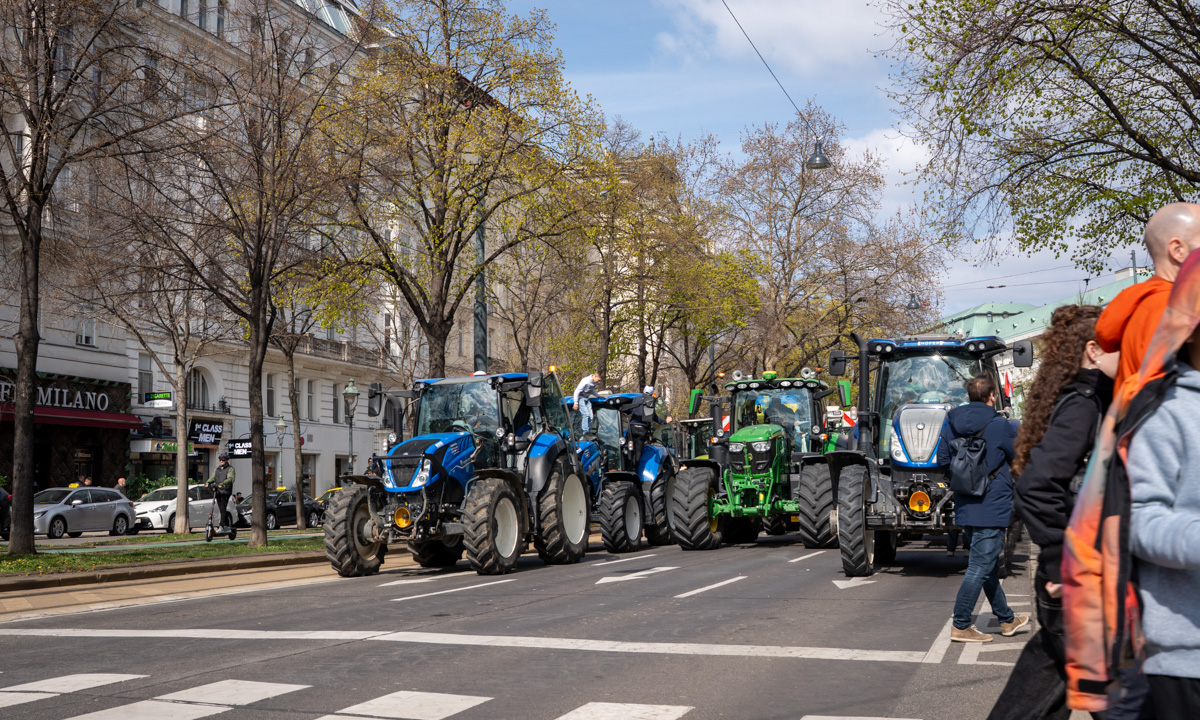 Zwischen 300 und 400 Traktoren fuhren am 1. April über die Wiener Ringstraße.