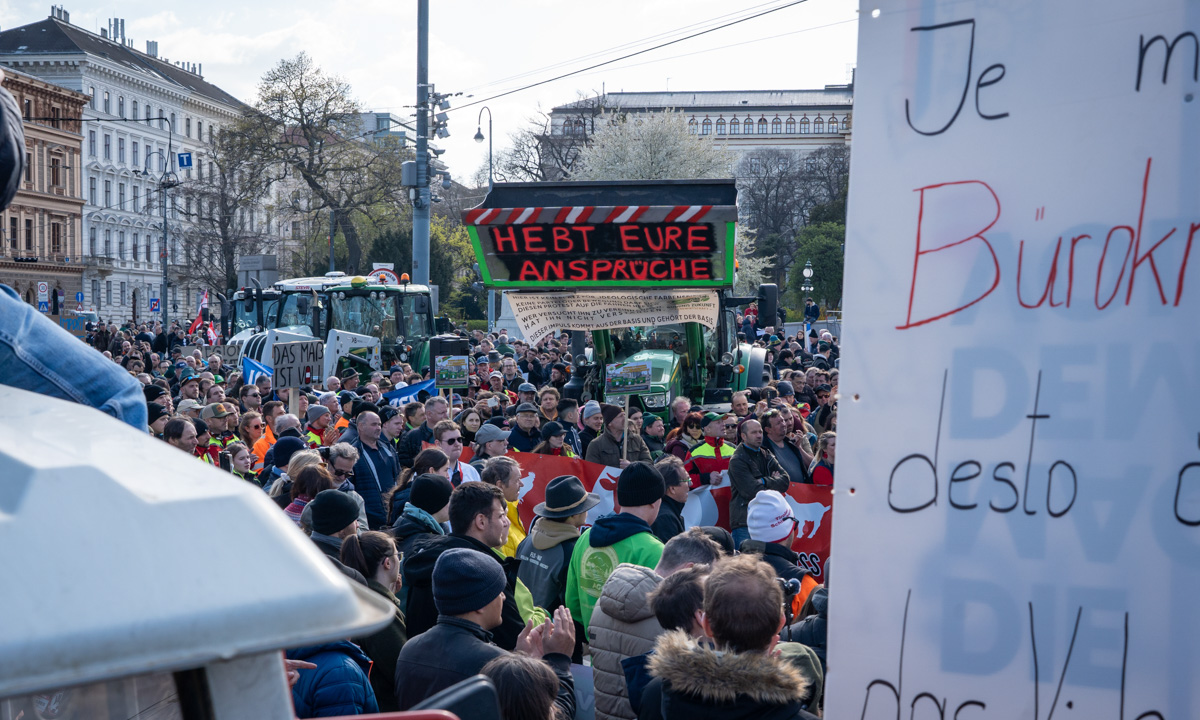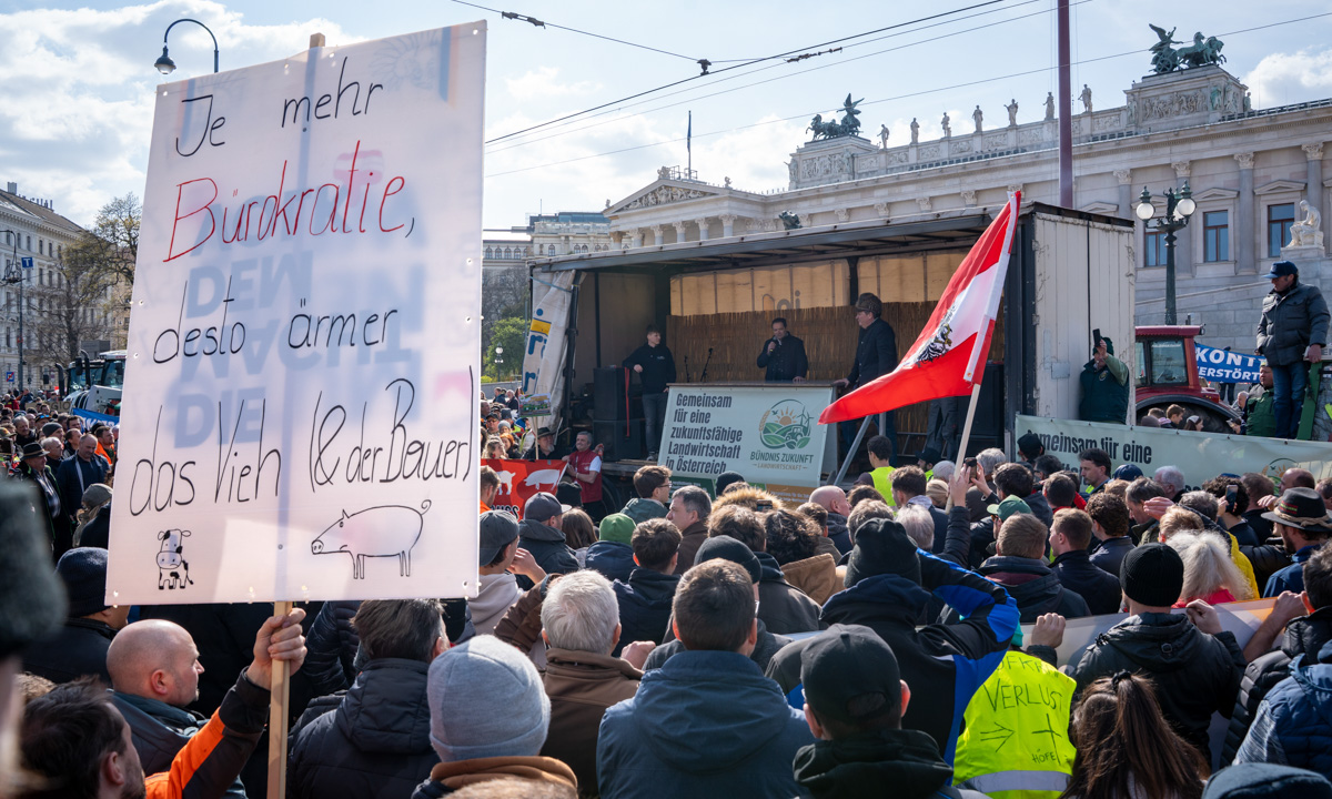 Wien, 1. April 2026 – Das Bündnis Zukunft Landwirtschaft mobilisierte Hunderte Bäuerinnen und Bauern in die Hauptstadt. Der Protest richtet sich nicht gegen ein einzelnes Gesetz, sondern gegen ein System, das aus Sicht vieler Betriebe seit Jahren unter Druck steht.