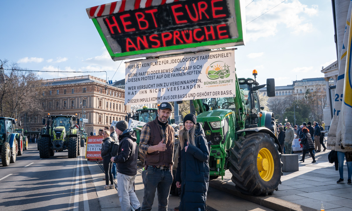 Dieser Schulterschluss zog sich durch den gesamten Protest. „Ich hab noch nie so einen Zusammenhalt unter Bäuerinnen und Bauern erlebt“, sagte Landwirt Martin Roderer aus Amstetten. Ähnlich formulierte es Bio-Landwirt Hannes Wiesmayer: „Ich bin sehr beeindruckt, was die Landwirt:innen hier auf die Beine gestellt haben.“
